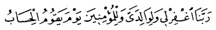 Okunuşu: Rabbenâğfirlî ve li-vâlideyye ve lil-Mü'minine yevme yekûmü'l hisâb.