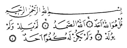 Okunuşu: Kul hüvellâhü ehad. Allâhüssamed. Lem yelid ve lem yûled. Ve lem yekün lehû küfüven ehad.